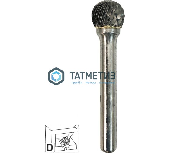 Борфреза твердосплавная №240, 16 х 14 х 59 мм, d хв.= 6 мм, Форма D - сфера, Двойная заточка, ПРОФ