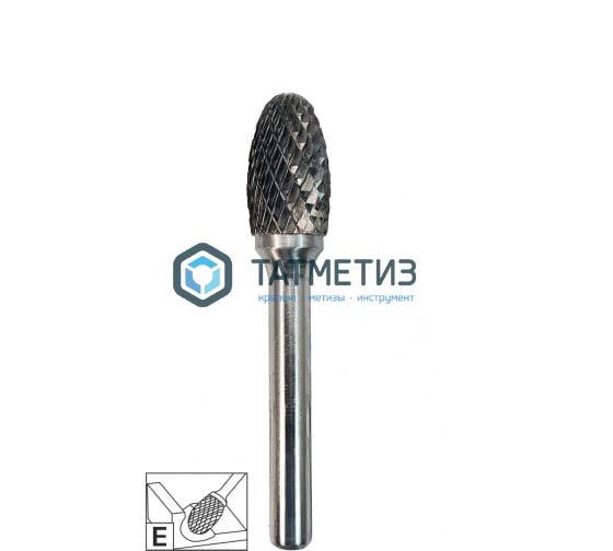 Борфреза твердосплавная №290, 10 х 16 х 61 мм, d хв.= 6 мм, Форма E - овал, Двойная заточка, ПРОФ