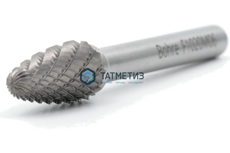 Борфреза твердосплавная №435, 6 х 16 х 61 мм, d хв.= 6 мм, Форма H - пламя, Двойная заточка, ПРОФ |