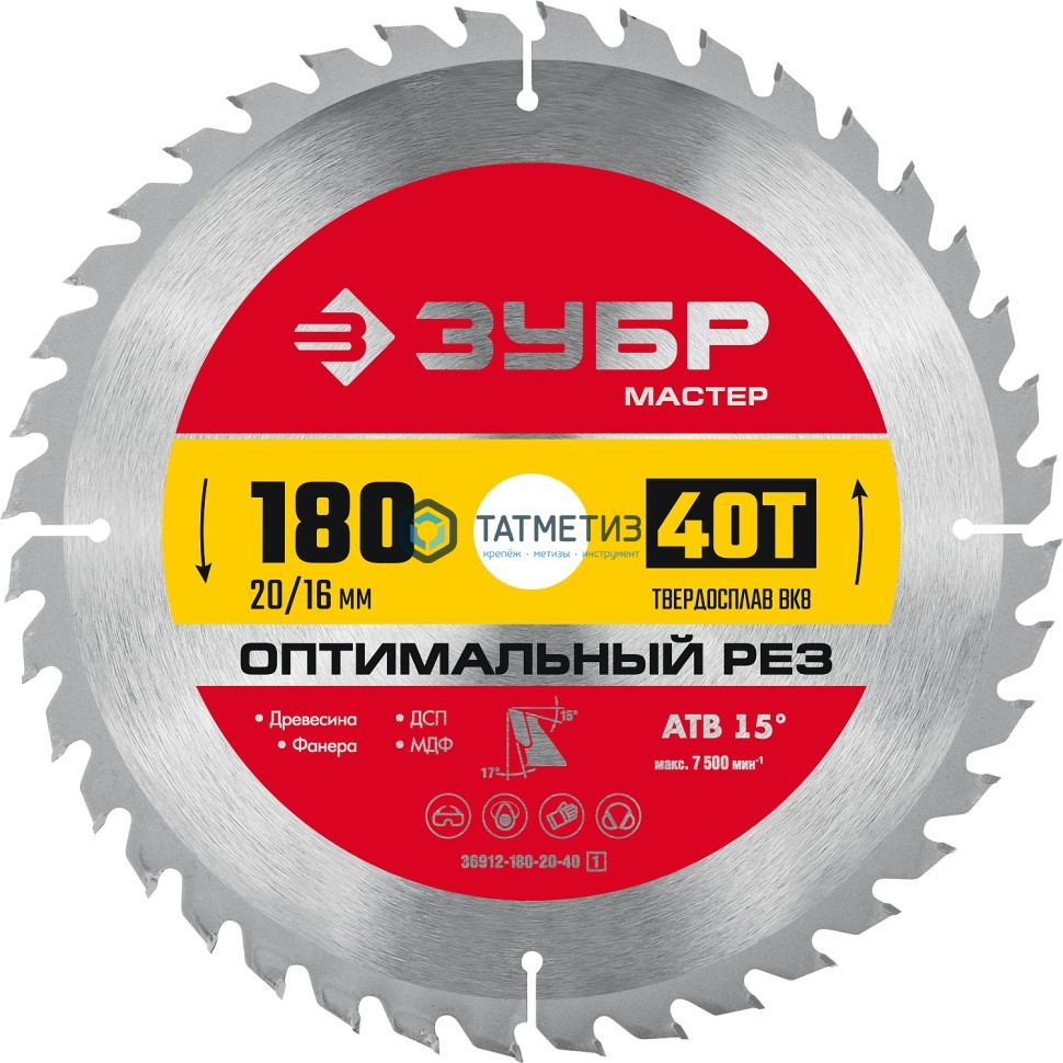 Диск пильный по дереву 180х20/16мм, 40Т ЗУБР, оптим. рез