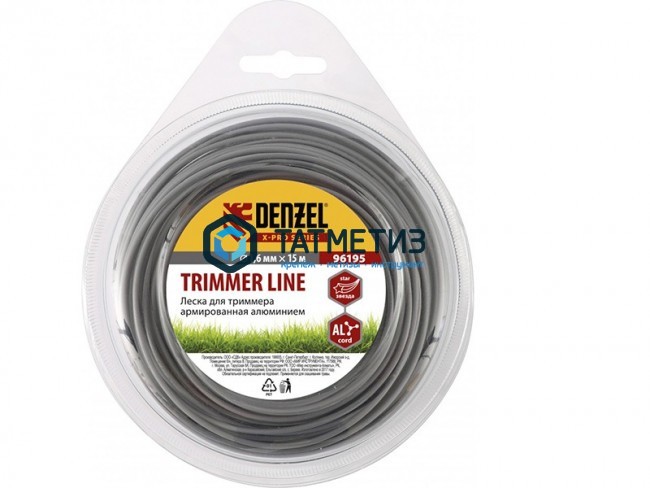 Леска для триммера армированная алюминием, X-Pro, звезда, 2,0мм х 15м, блистер Россия// Denzel