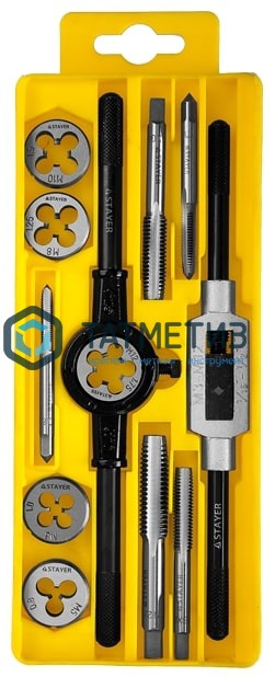 Набор метчиков и плашек STAYER "MASTER", метчикодержатель 1шт, плашкодержатель 1шт, метчики 5шт, плашки 5шт, 12 предметов