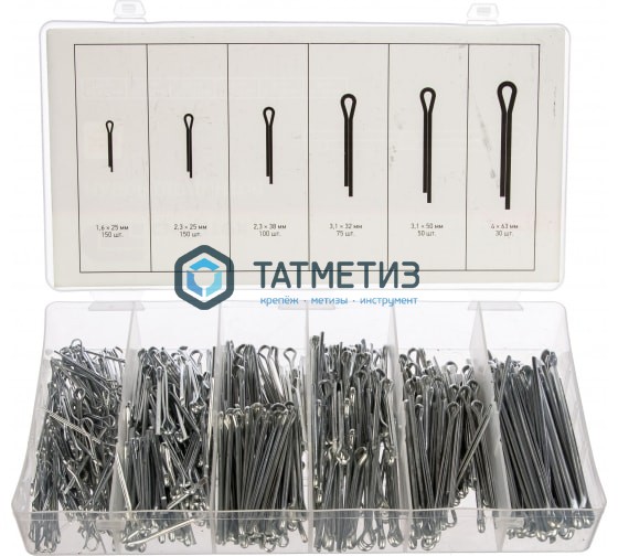 Набор шплинтов, S головки х L: 1,6х25, 2,3х25, 2,3х38, 3,1х32, 3,1х50, 4х63 мм, 555 предм.// СИБРТЕХ
