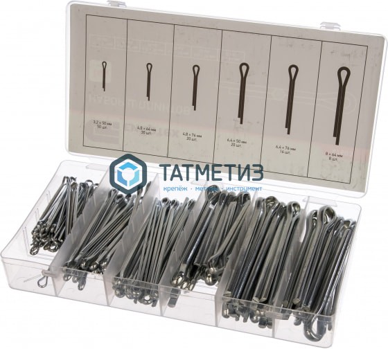 • Изделия набора шплинтов СИБРТЕХ 144 предмета 47603 изготовлены из стали