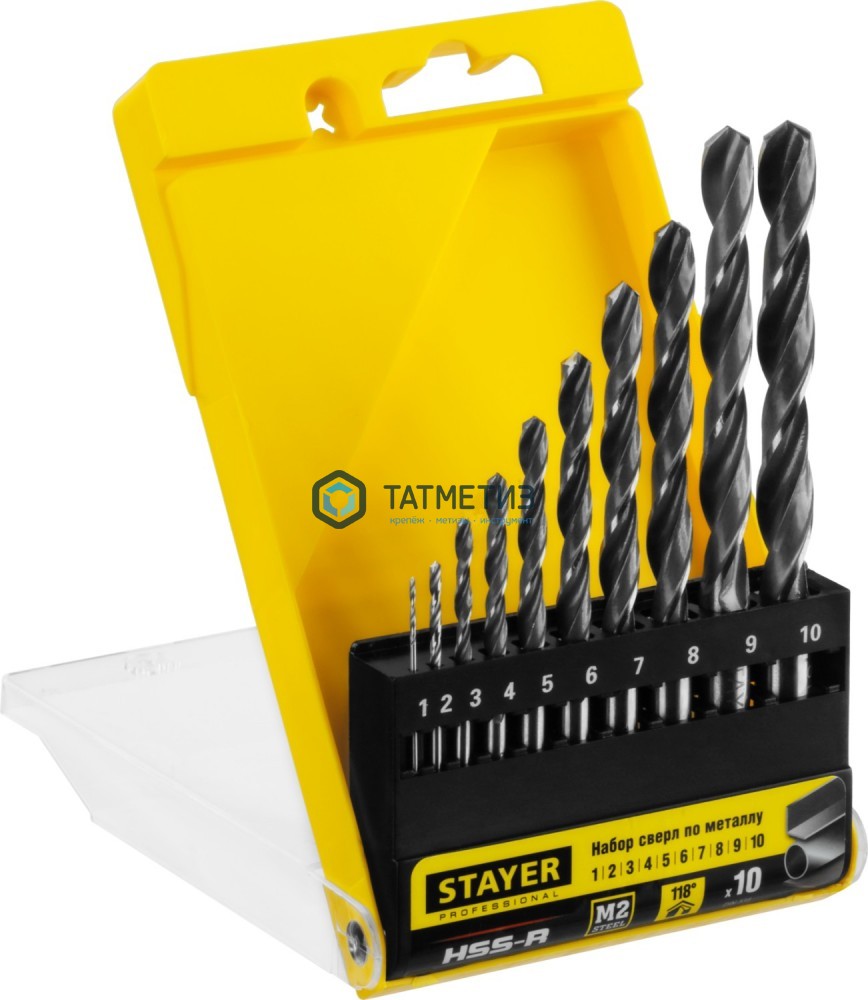 Набор сверл по металлу, 1-10 мм, 10 шт, сталь P6M5, класс В, STAYER HSS-R, Professional