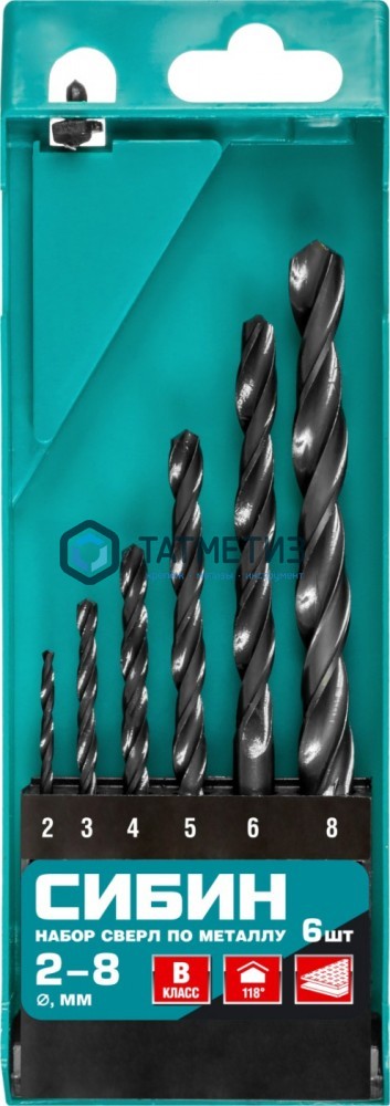 Набор сверл по металлу, 6 шт (2-8мм) класс В СИБИН
