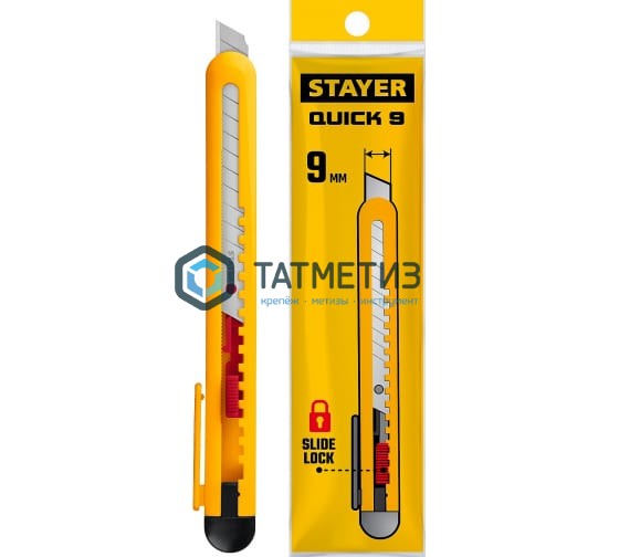 Нож, 9 мм, сегмент. лезвие, из АБС пластика QUICK-9, STAYER