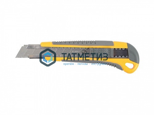 Нож STAYER " металлический обрезиненный корпус, автостоп, 18мм