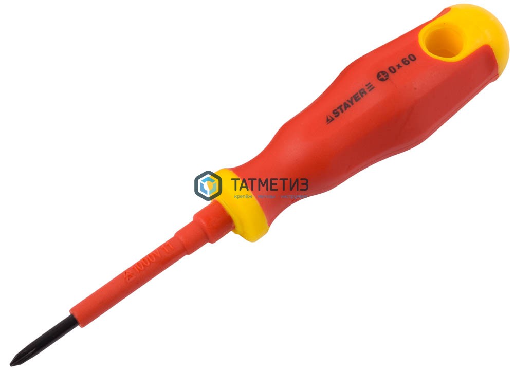 Отвертка диэлектрическая, PH0 х 60 мм, ЗУБР "ЭЛЕКТРО-ЭКСПЕРТ", Cr-V, 3хкомп. рукоятка, до 1000 Вт