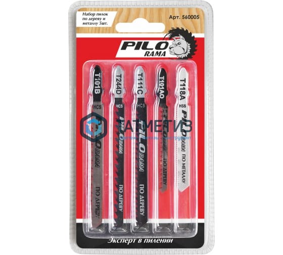Набор пилок 5 шт по дереву и металлу T101B, T101AO, T111C, T244D,T118A Pilorama 560005 включает самые популярные модели пилок для электролобзика для чистого, быстрого, грубого и фигурного распила древесины и пилку для пиления металла.