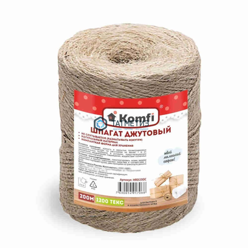 Шпагат джутовый, 2 мм x 200 м, 1200 Текс, цилиндр, Komfi/40