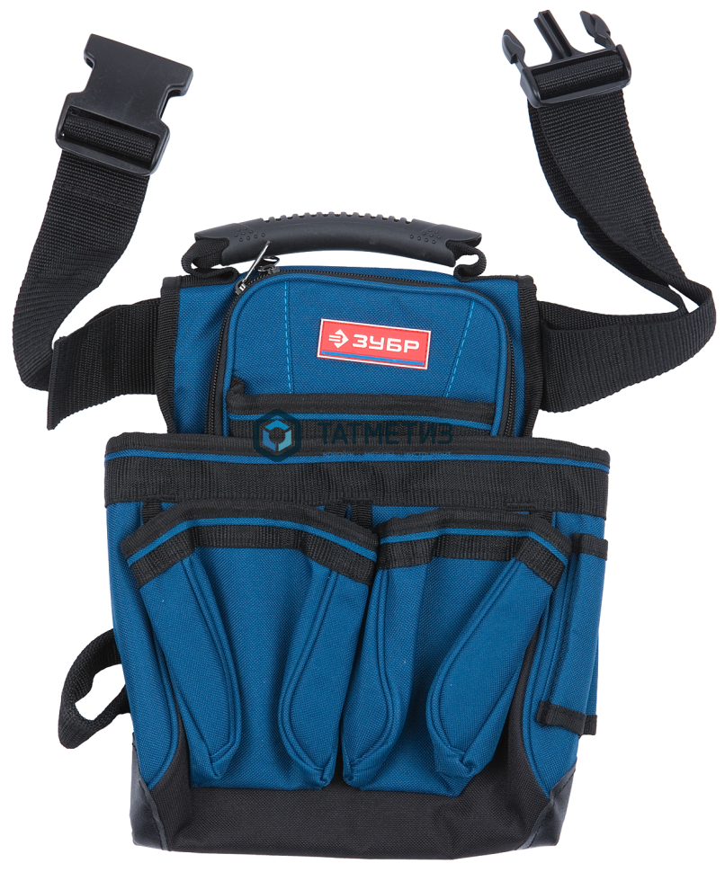 Сумка - пояс ЗУБР "ЭКСПЕРТ" одинарная, держатель для молотка, 9 карманов