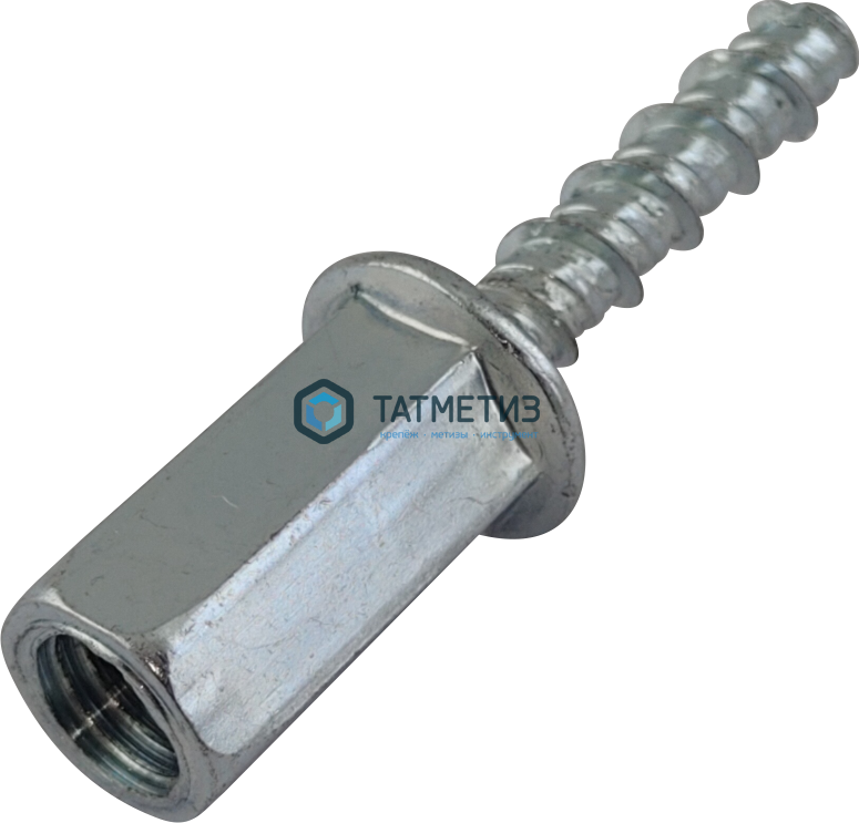Анкер шруп по бетонну готов к закручиванию в основаиие сразу после засверливания и не требует установки дюббеля. Шестигранная головка имеет внутреннюю соосную резыбу двух диаметров М8 и М10 для креплления метрческой шпилыки.
